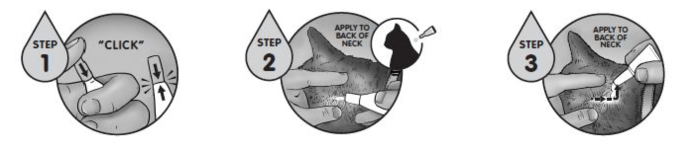 성충 벼룩을 사멸시키고 벼룩알이 한달 동안 부화하는것을 똑같이 방지하며, 벼룩 감염의 예방 및 관리 심장사상충 질병예방, 귀 진드기 감염 치료에 적용 됩니다.