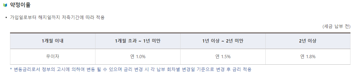 매월 2만 원 이상 50만 원 이하의 금액을 자유롭게 납입(국고금 관리법에 따라 10원 단위까지 납입 가능)