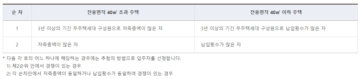 국민주택 등의 일반공급 시 1순위 중 같은 순위 안에서 경쟁이 있을 경우 다음 순차로 공급