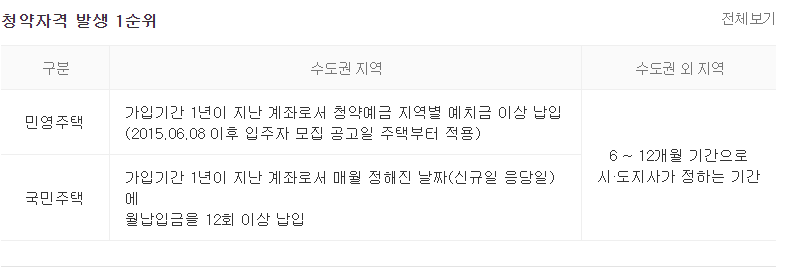 청약통장 1순위 조건