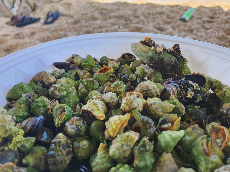 아차 전복은 씨를 뿌려 놓은 주인분이 따로 계시니 함부로 따면 안 된답니다. 그럼 전복 대신 따개비인가요 이게 뭐지 아무튼 먹어도 되는 요것을 따면 됩니다. 이름을 잊어버렸네요. 고추 골뱅이인가 아무튼 실제로 돈 주고 사 먹으려면 비싸다고 합니다. 맛도 좋고요.