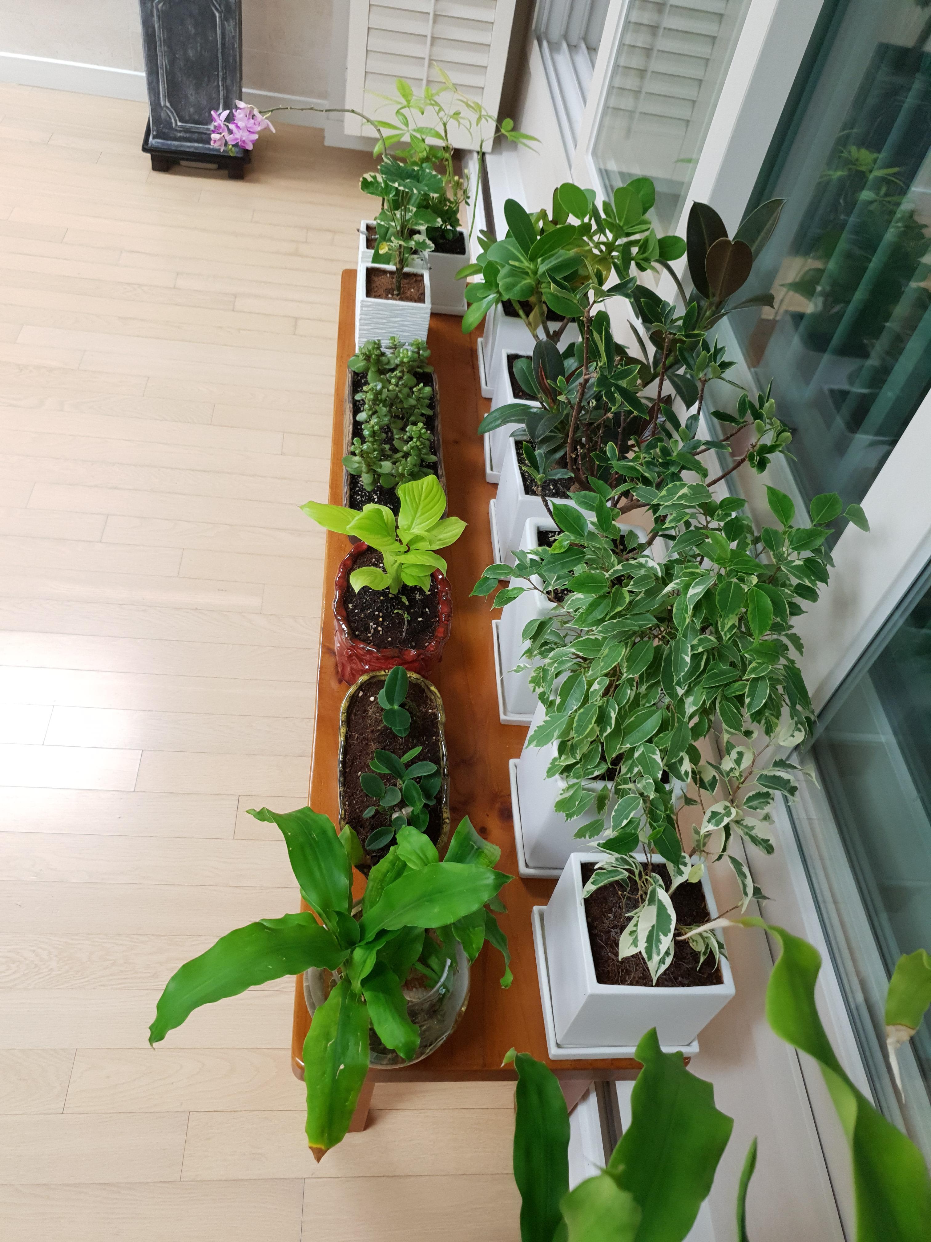 예전에 집에 큰 원목 식탁이 있었는데 그 식탁을 아이 공부 책상으로 만들어 버리고, 남은 긴 의자를 위 사진처럼 식물들을 나 두고 있습니다. 집에서 키우기 쉬운 식물 대충 여기 있는 식물들 사진 보면 답 나올 거라 생각이 듭니다.
