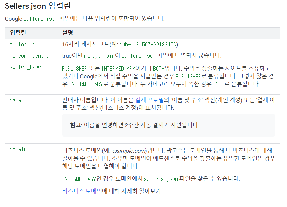 애드센스 Google sellers.json 파일에 게시하시기 바랍니다