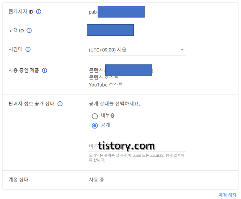 자 우리가 여기서 고민을 해야 하는 이유가 뭐가 있을까요? 공개 안 하면 어떻게 되는데, 저위에서 말하네요. 공개 안 하면 입찰 시 광고주들에게 게시자의 정보를 확인할 수 없으니 수익에 영향을 줄 수 있다 이 정도, 자 여러분의 선택은 어떻게 하실 건가요. 저는 당연히 일단 실험이기에 눌렀습니다.