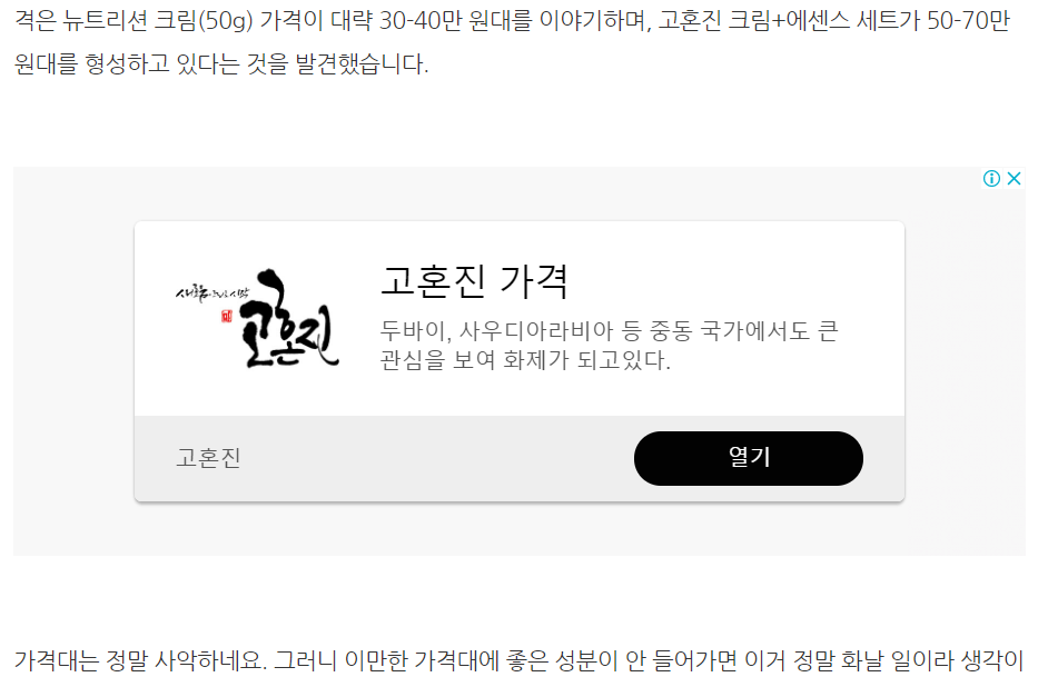 애드센스 광고에 고혼진 광고 너무 많이 뜨길래, 요거다 싶어서 하나 작성해봤네요. 요론글들이 여기저기 산재해서 지뢰밭같이 어느정도 작성되어 있담면, 가끔 1클릭당 좋은 수익을 줍니다. 또는 해당글에 들어온 사람이 구입으로 연계될 확율이 높기 때문에 CPC단가도 높게 측정됩니다. -요까지만 자꾸 더이야기 하다 다털릴것 같네요 -