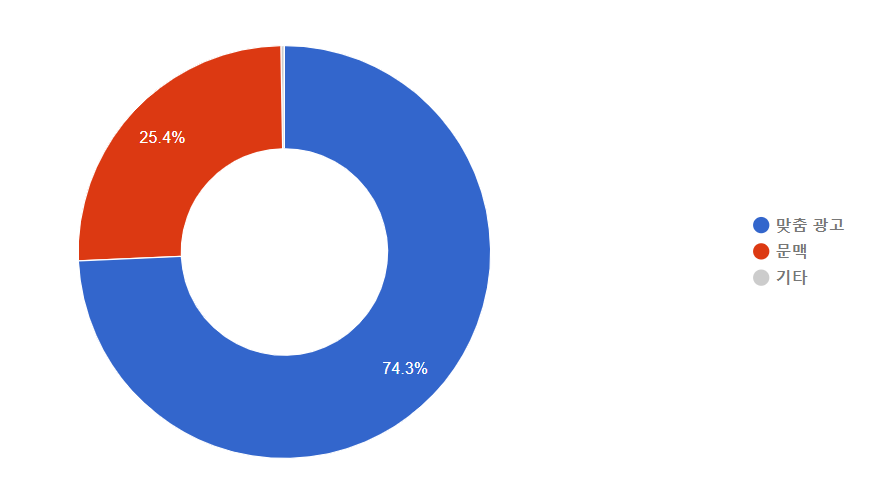 먼 말인 줄 이해하셨나요. 일반 처음일 때는 아래 도표를 보면요 문맥광고가 당신의 수익에 가장 큰 비중을 차지할 겁니다. 왜냐하면 포스팅이 별로 없고, 운 좋게 문맥에 의해서 수익성이 높기 때문이죠. 그런데 초반에 맞춤 광고가 더 수익이 큰분들은 문맥광고 분명 신경써야 합니다.