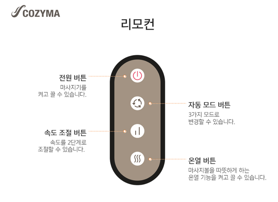 이 정도 설명이면 대충 이렇게 사용된다는 걸 아실 겁니다. 아차 그리고 해당 제품은 온열 기능이 있어 겨울에 따듯하게 안마를 할 수 있습니다. 이 기능 없으면 겨울엔 추워서 하기 싫거든요.