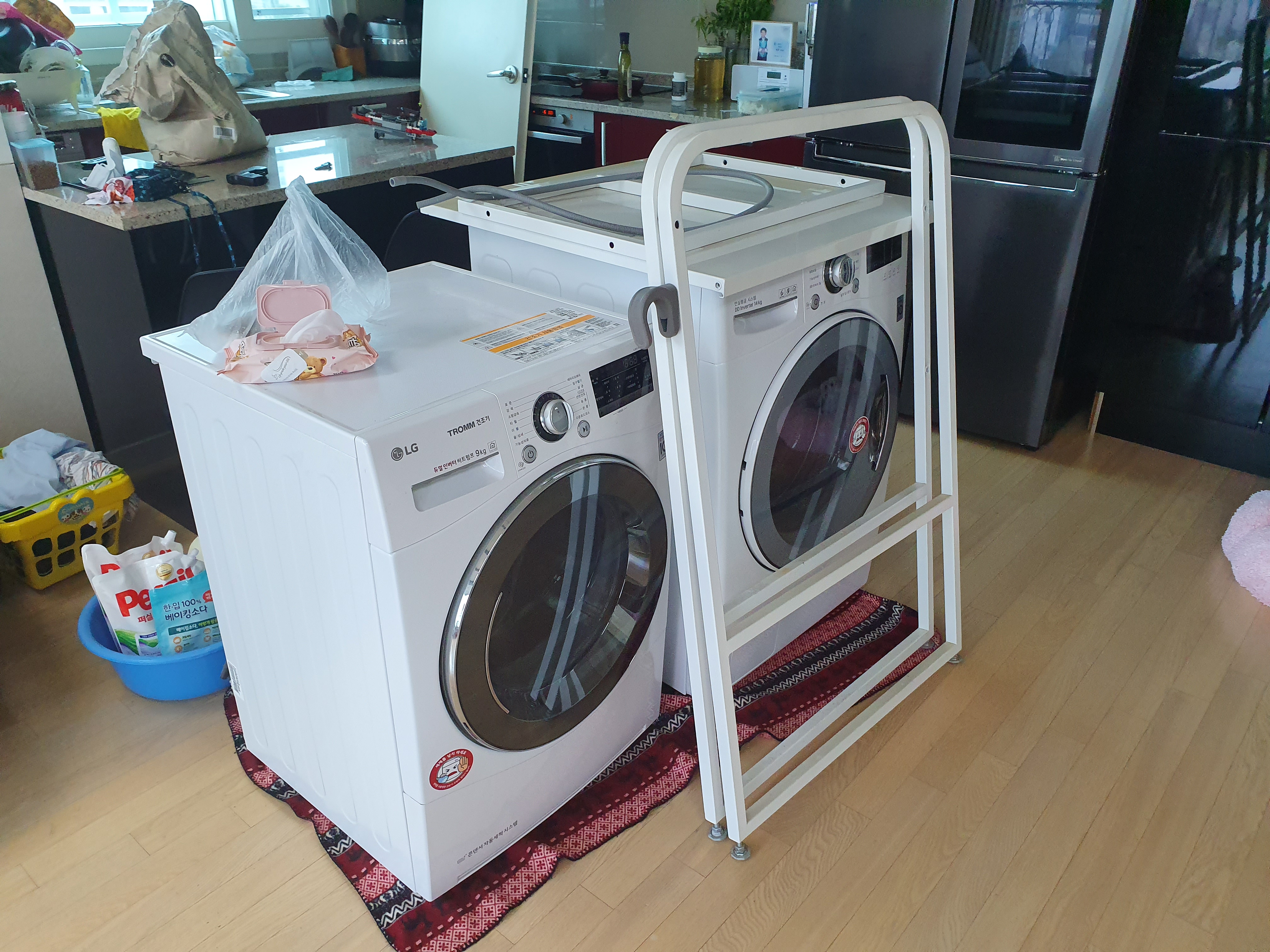 앞서 이야기드렸다시피 다용도실이 좁아서 보일러 앞에 세탁기, 건조기가 2층으로 놓아져 있습니다. 이것들을 치우지 않으면 보일러 수리를 할 수가 없기에 LG전자서비스센터에 전화해 미리 이전 날짜와 설치 날짜를 잡습니다.