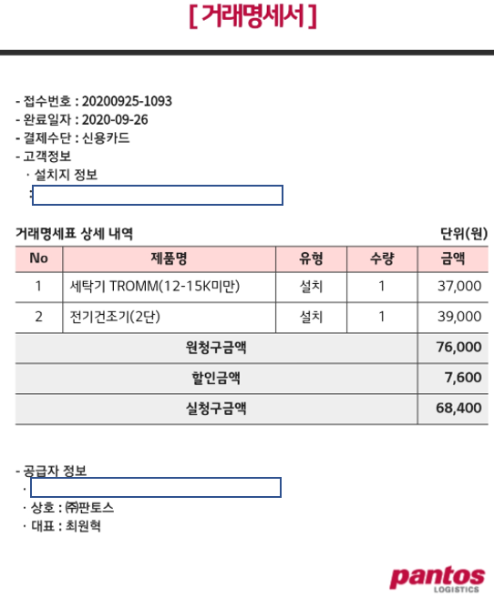 아래와 같이 이전하는데 비용이 들어가고 보일러 설치 후, 다시 세탁기와 건조기를 재설치하는데 비용이 또 들어갑니다. 고로 2번 정도의 비용은 11만 7천9백 원이 들어갔네요. 보일러 고치려다가 눈먼 돈이 이렇게 나갑니다.