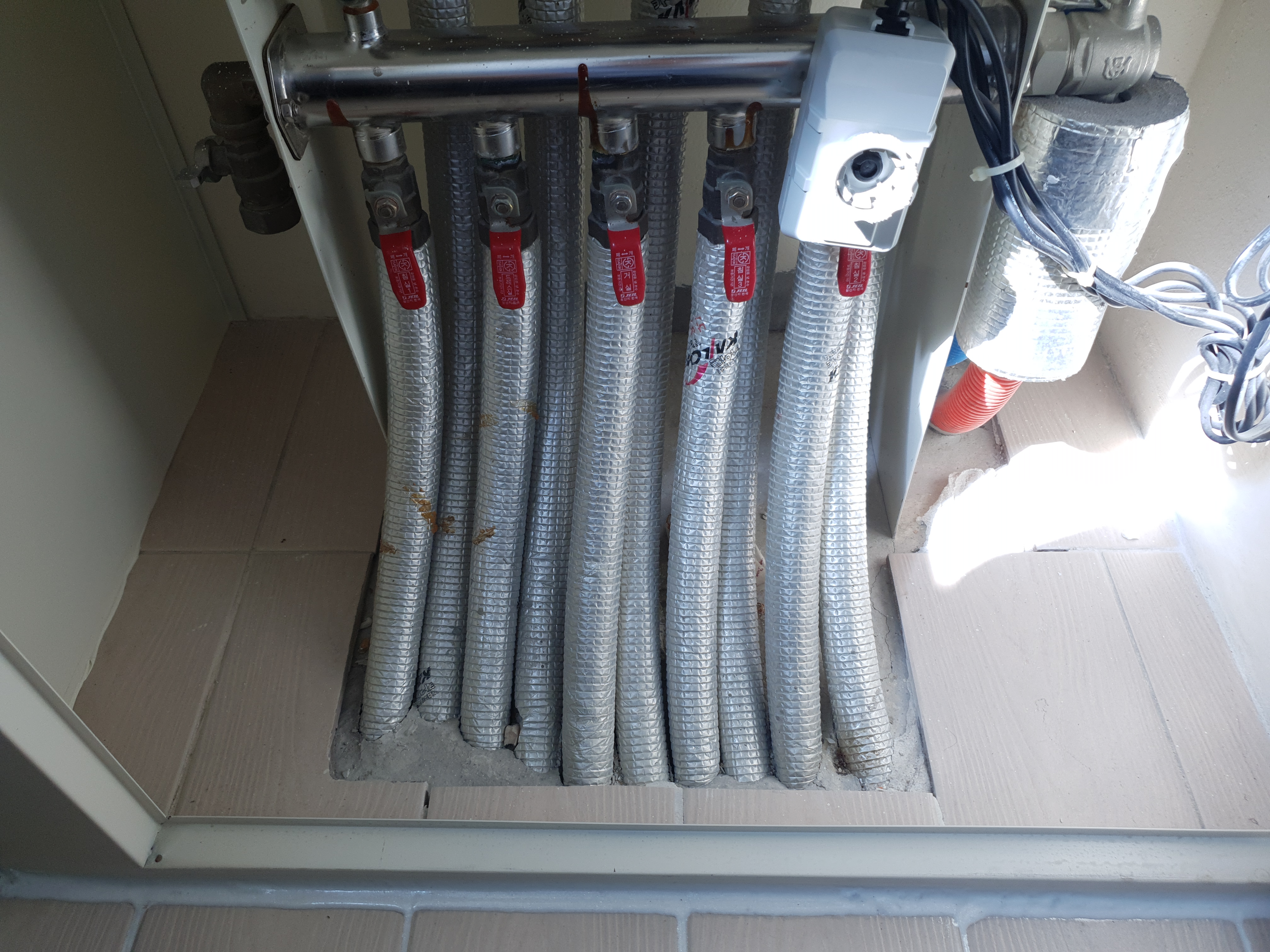 제가 한꺼번에 모두 교체하게 된 이유는 간단합니다. 중간에 또 사용하다가 이번엔 각방제어시스템이 고장 나면 또다시 보일러를 만져야 하는데 그러면 위처럼 세탁기, 건조기를 또 들어내야 한다는 걱정으로 그냥 한 번에 모두 교체했습니다.