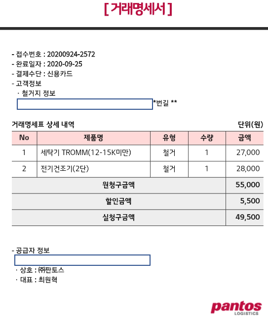 ▣ 세탁기, 건조기 이전비용