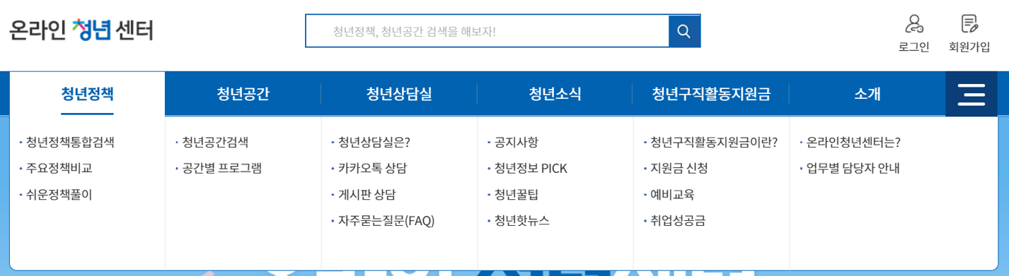해당 온라인 청년센터 사이트를 적극 추천합니다. 포털에 온라인 청년센터라고 치면 나오는데요. 거기에 많은 정보들이 들어 있습니다. 어떻게 보는지 간단하게 알아볼게요.
