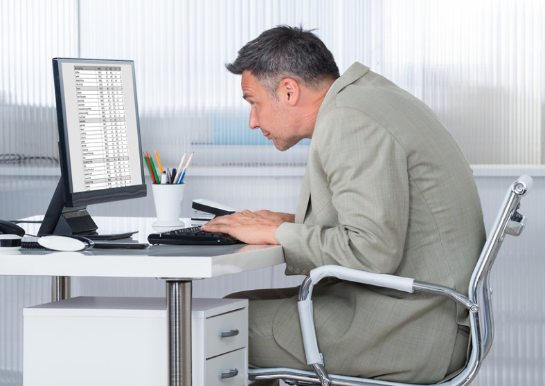 눈은 컴퓨터 화면의 상단 1/3을 직접 가리켜 야합니다.