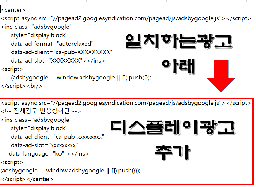 크크 제가 가진 소소한 거 자꾸 이야기드려서 밑천 다 드러날까 봐 부끄럽네요. 뭐 다들 아는 건데 그렇죠. 자 보세요. 일치하는 콘텐츠 광고 아래 또 디스플레이 광고가 있죠. 내 플로그인 일치하는 광고 아래 디스플레이 광고 넣으면 됩니다.