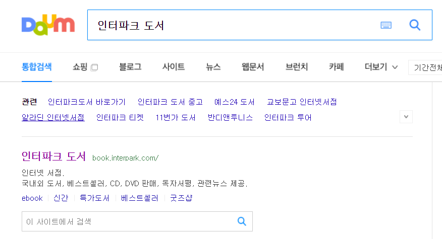 포털(naver, daum)에서 인터파크 도서 치고 들어간다