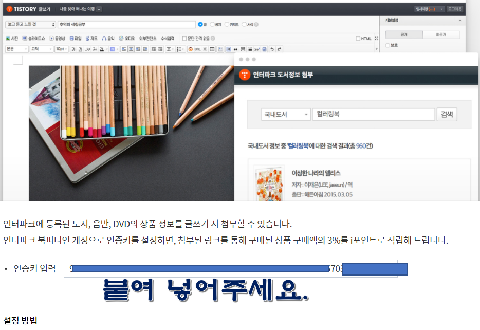 티스토리 인터파크 책 정보넣기 적립금 받는방법
