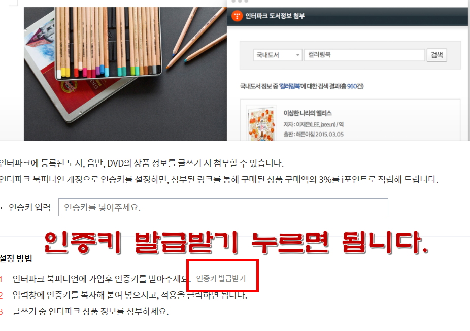 티스토리 인터파크 책 정보넣기 적립금 받는방법