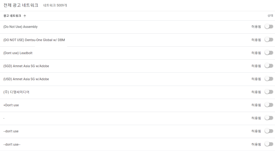 여기서 문제, 여러분 해외 광고 특히 영어권 광고 차단하니깐 어때요, 그다음 날 며칠 동안 엄청 수익이 바닥으로 떨어지죠, 급한 사람은 다시 그 광고 차단 모조리 다시 살리기도 합니다. 제가 옛날에 그랬거든요. 보통 요정도 수준에서 더 이상 모르거나 알아도 건드리니깐 수익이 더 안 나서 그냥 눈만 껌뻑 껌뻑하는 분들이 많을 겁니다.