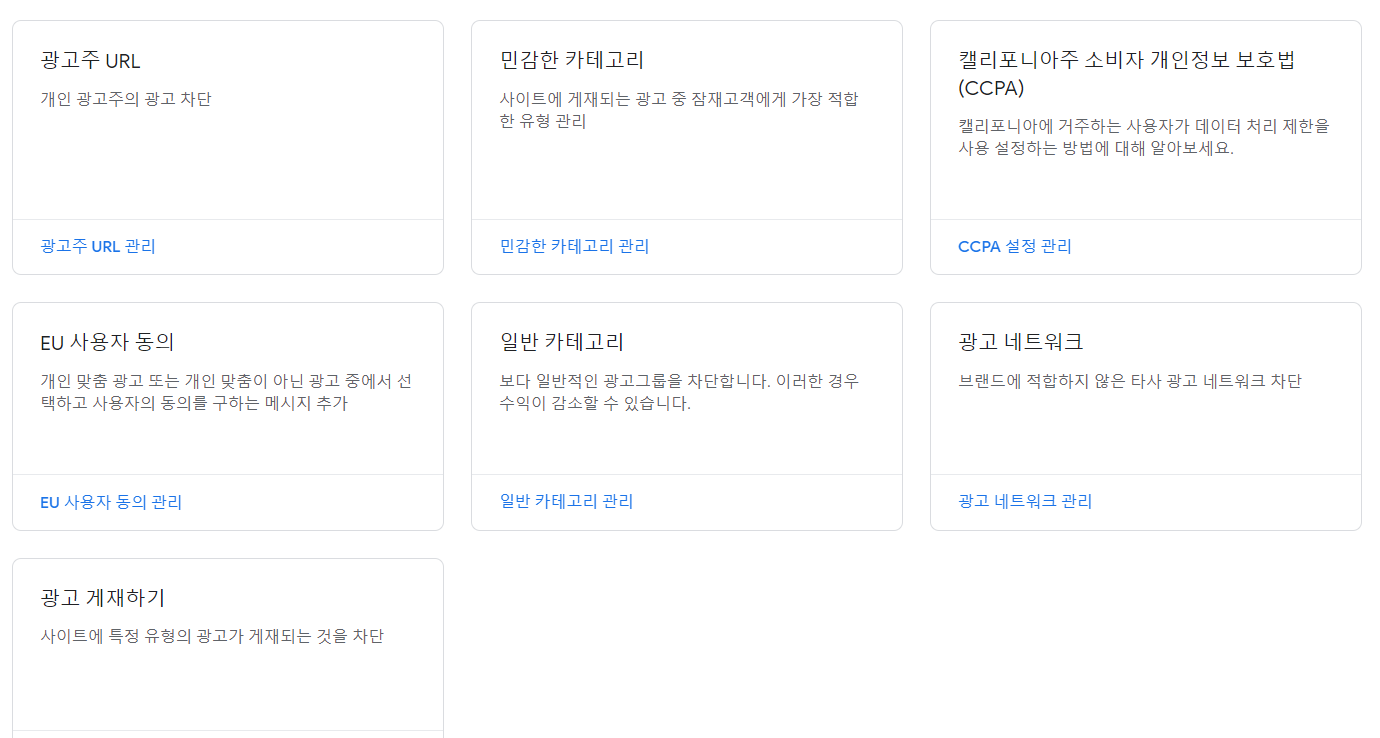 자 애드센스 차단 관리에 들어가서 모든 사이트를 눌러줍니다. 그러면 광고주 URL, 민감한 카테고리 , 일반 카테고리, 광고 네트워크, 광고 게재하기 등이 있습니다. 요것을 당신은 하나하나 2주씩 대입해보며 해보셨습니까?