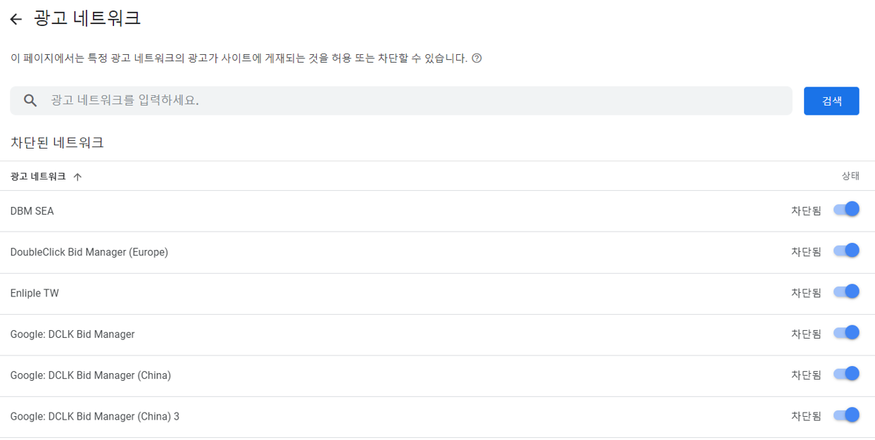 여기서 문제, 여러분 해외 광고 특히 영어권 광고 차단하니깐 어때요, 그다음 날 며칠 동안 엄청 수익이 바닥으로 떨어지죠, 급한 사람은 다시 그 광고 차단 모조리 다시 살리기도 합니다. 제가 옛날에 그랬거든요. 보통 요정도 수준에서 더 이상 모르거나 알아도 건드리니깐 수익이 더 안 나서 그냥 눈만 껌뻑 껌뻑하는 분들이 많을 겁니다.
