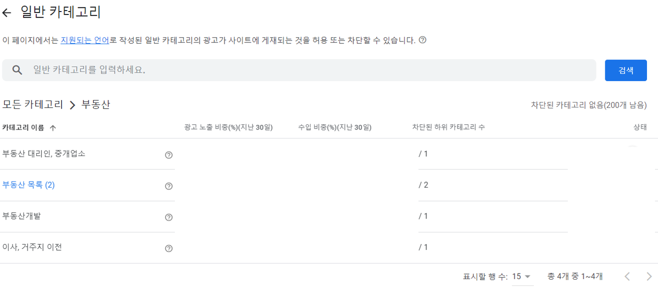 부동산에 대한 폴더를 클릭해서 들어오니 좀 더 세부적으로 나누어져 있죠. 예를 들어 당신이 부동산 관련 일을 하는데 내 블로그에 부동산 개발 및 이주에 관한 광고만 받고 싶다. 그리고 중개업소 대리인 이런 광고는 내 회사 광고해야지 이런 회사 광고는 불필요하다 생각하면 차단해주면 됩니다.