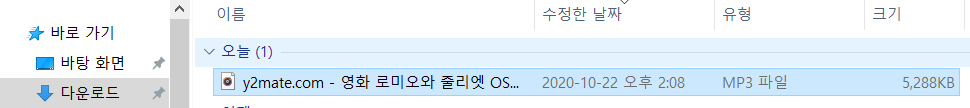 위 로미오 줄리엣 OST를 mp3파일로 변환시켜보도록 하겠습니다. 아래를 참조하세요.