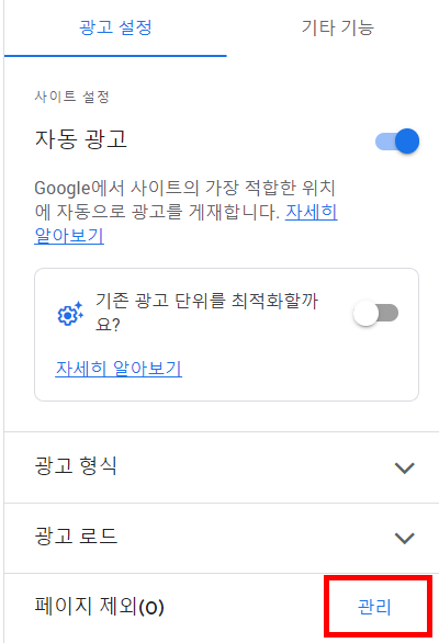 자신이 선택한 페이지 광고 제외를 확인한 후 나가서 사이트에 적용을 해주셔야지만 적용이 됩니다. 적용하지 않고 그냥 넘어가면 적용되지 않은 그대로이니 깜빡하지 마세요. 사이트 적용 꼭 하신 후, 이제 구글에게 너희들이 시키는 데로 내가 조치를 했으니 확인해 봐라 그런 이야기를 해주기 위해 나갑니다.