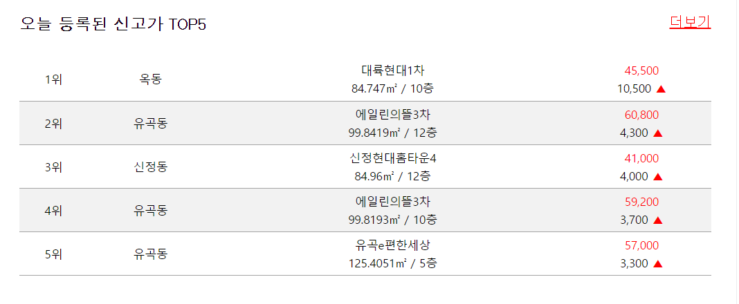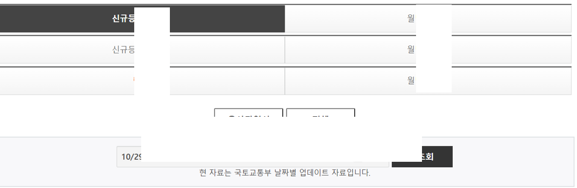 자 해당 오늘 등록된 실거래 자료를 클릭해서 들어가 봅니다. 그러면 아래처럼 무언가 나오죠. 이게 뭐라고 생각합니까? 눈치 빠르신 분들은 티스토리나 블로그를 활용해서 테이블과 같은 무언가를 만들어서 클릭 시 다른 페이지로 넘어가게 끔 한 것입니다. 이건 HTML을 잘 만질 수 있는 사람일수록 더 예쁘게 잘할 수 있겠죠. 하나를 클릭하면 다음 페이지로 넘어갑니다.
