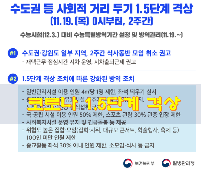 아차 그리고 많은 사람들이 코로나 1.5단계 기준에대해 궁금해 하시는데요, 이포스팅으로 하나 더 적을려고 하다가 이놈의 귀차니즘으로 간단하게 코로나 1.5단계 기준을 설명드리겠습니다.