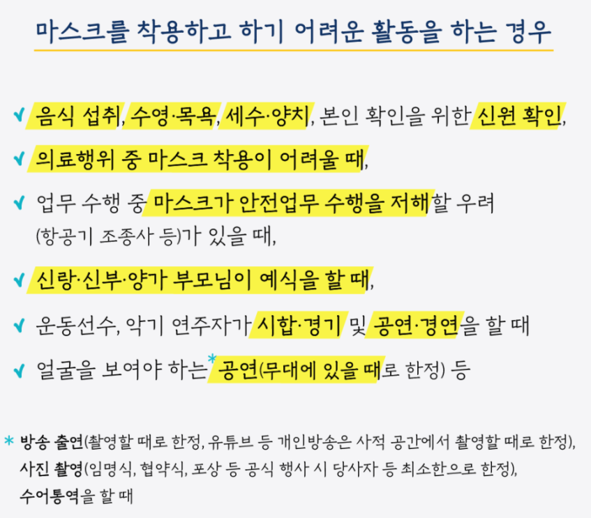 갓난아기와, 아무것도 모르는 꼬맹이들에게 마스크 미착용이라고 과태료를 부과할 수는 없겠죠. 그리고 특정 질병이 있거나 숨쉬기 어려운 조건의 어르신들에게는 예외가 된다고 하니 정확하게 알아봅시다.