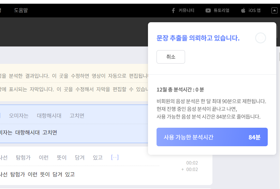 그러면 자동으로 음성을 인식하여 한글자막을만듭니다. 그런데, 제가 재생시킨 동영상은 영어노래이며 영상이 이상한거라 자막만 들어가는지 확인해 보겠습니다.