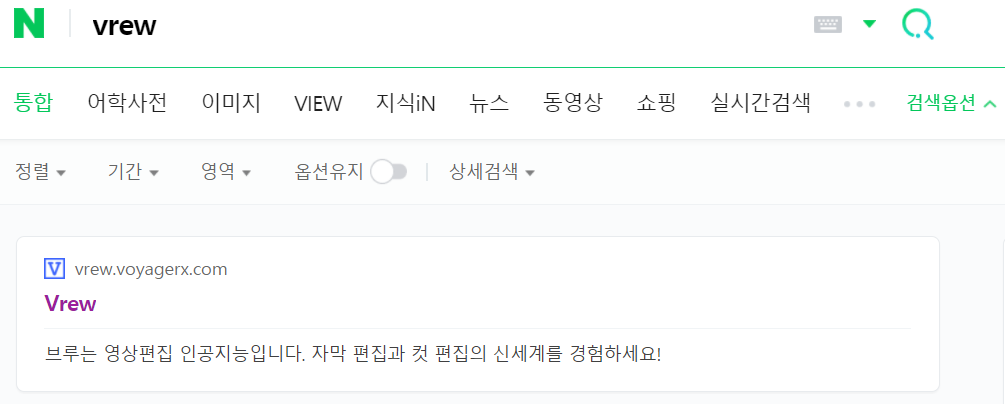 간단합니다 네이버든, 다음이든 검색창에 vrew를 치시고 엔터를 치면 맨위에 vrew라고 나옵니다. 실수로 vre를 치시면 이런게 나와요 반코마이신 내성 장알균(VRE) 감염증 그러니 끝에 꼭 vrew를 치셔야 합니다.