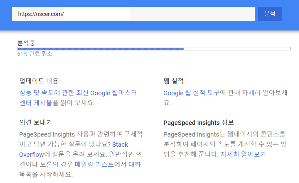 PAGESPEED INSIGHTS 클릭하면 아래와 같은 사진이 나옵니다. 기다리세요.