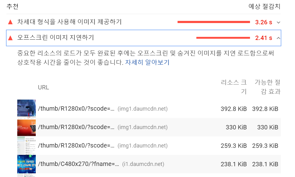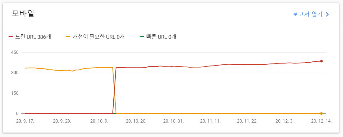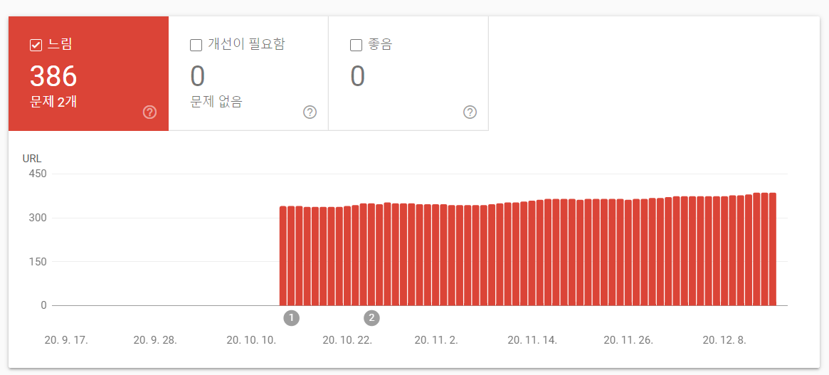 모바일에 386개의 URL이 느림으로 나옵니다. 이러면 구글 SEO에 문제가 생긴게 뻔한데 느림386개의 문제점은 무엇인지 알아보도록 하겠습니다. 문제가 2개라고 나와 있네요.