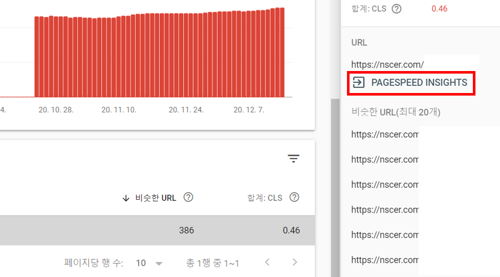 앞서이야기 한것처럼, CLS, LCP가 문제가 되었습니다. 여기서 말하는 내용이 어려워서, 그져 내 블로그 속도가 늦어진 원인을 찾는거라 생각하며, 살펴보기로 했습니다. 주소를 더블크릭하면 -> 오른쪽에 PAGESPEED INSIGHTS 나옵니다. 아래 사진을 참고하세요.
