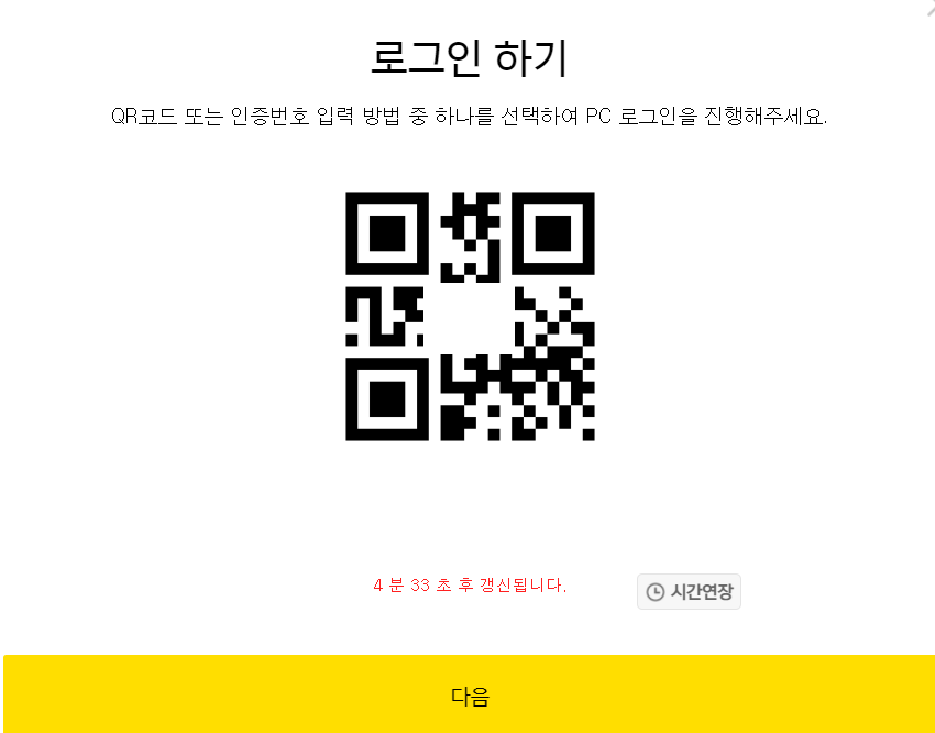 그러면 위와 같이 로그인 하기가 뜨는데요. 여기서 로그인 하는 방법이 또 있습니다. 기존에 사용했던 카카오뱅크 앱에 다시 들어가서 아래 앱설정 보이시죠. 그걸 누르시면 -> PC로그인 -> QR코드 로그인 누르시고 위의 코드를 가져다 대면 개인의 승인비밀번호를 입력하면 로그인이 됩니다.