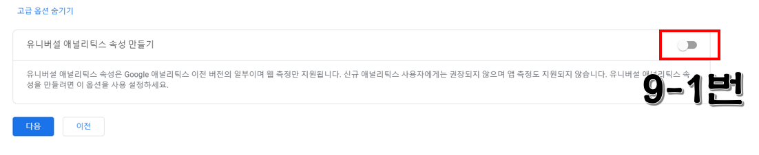 그러면 6.7.8번 보이시죠. 6번에는 아무 이름 적어주시고요. 보고 시간대는 미국으로 되어 있는데 대한민국으로 바꿔주세요. 그런 후 8번 고급옵션 보기를 누릅니다. 그러면 아래와 같은 9-1번이 나옵니다.