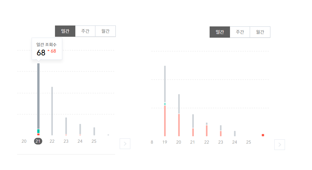 또한 다음의 비중이 적습니다. 네이버 뷰란에 나옵니다. 뷰란에 나오는데도 방문자가 저정도란 말은 사람들이 엄청 찾는 글은 아니라는 것이겠죠. 그리고 1년 넘도록 2-3백명 유지되어 들어오고 있는 키워드 입니다.