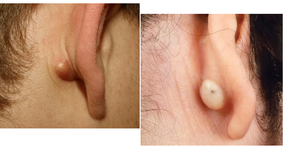 일반적으로 귓볼 몽오리 낭종은 죽은 피부 세포로 이루어진 덩어리입니다. 여드름과 비슷하게 피부 아래의 작고 부드러운 융기처럼 보이며, 완두콩 크기보다 크지 않습니다. 그러나 크기가 변하는 지 채크하셔야 합니다.