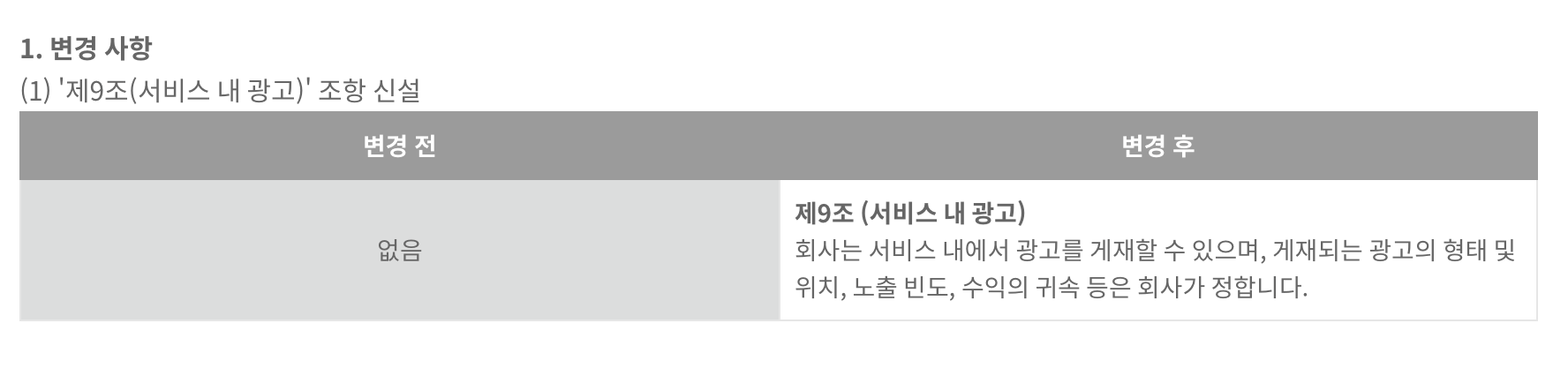 기존에 없던 말도 안되는, 자신들의 이익만을 생각한 변경후 카카오가 원하는 말입니다. 이말인즉 광고에대한 노출빈도 위치, 수익의 귀속등은 회사가 마음대로 정한다. 그거에 더 가관인것은 아래와 같습니다.