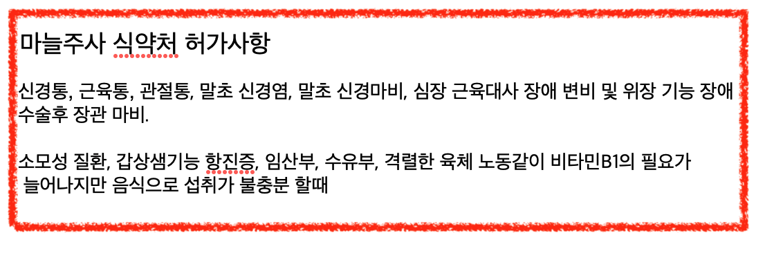 일반적인으로 병원에서 링겔로 맞는 비타민B1을 배합한 주사약을 마늘주사라고 이야기 합니다. 비타민B1은 체내 에너지 생산을 높이고 신진대사를 촉진하고 만성 피로와 권태감등의 회복하는 효과가 있습니다.