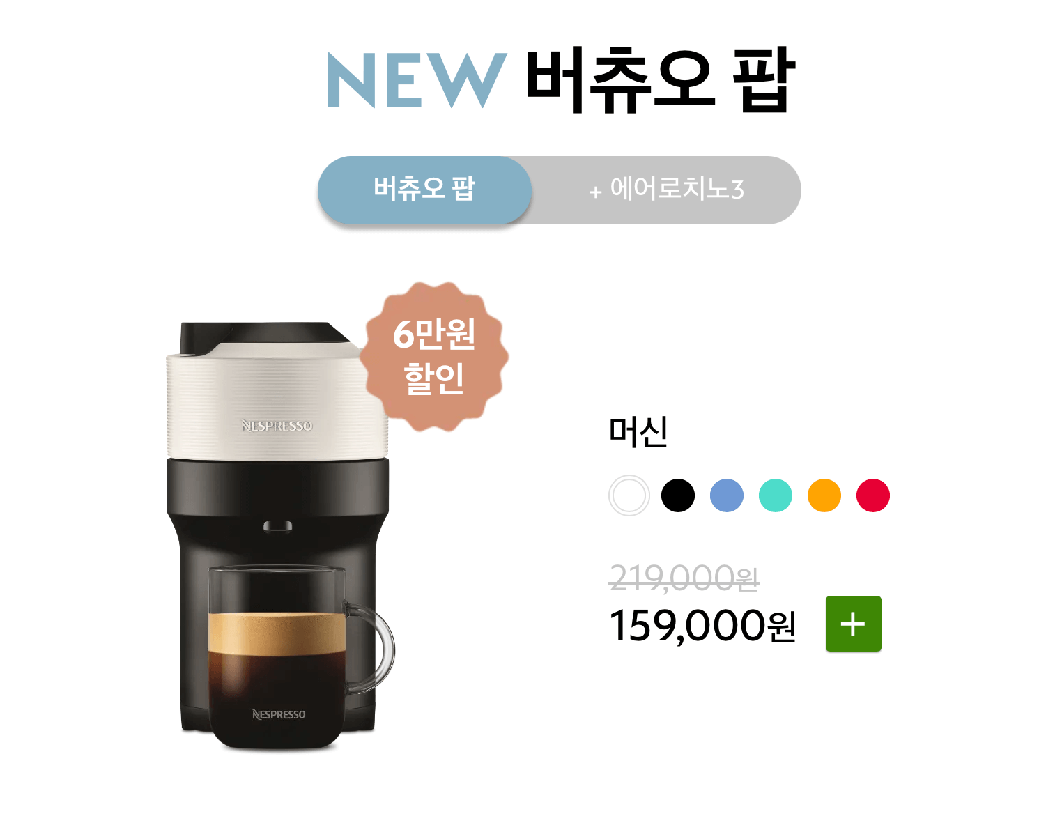 버츄오 플러스의 장점은 물통이 좌우 이동형 물통으로 고정형 물통인 버츄오팝보다 물통위치 이동이 유용합니다. 이러한 차이점과 가격은 아래와 같습니다.